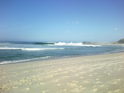 I woke up around 4:00 am, shave myself, took a shower, drink some coffee that I prepared with the coffee machine, and ate some fruit as banana, papaya, tangerine. I usually left my "luck" backpack ready with the equipment: Video Camera, two cells phone, batteries, chargers, raincoat, bottle of water. I still do not have a tripod, but I will buy one. At 5:00 am I caught the bus line "355"-Madureira- to the bus station in Gamboa. Then I bought the ticket to Saquarema at 1001 Bus lines, and the Newspaper EXTRA, to prepare the Versions. So I caught the bus of 1001 lines, the same company that I used to go to São Paulo, and then go to Porto Alegre, 1001 bus company is excellent company.Then the bus left the bus station, and crossed the bridge "Presidente Costa e Silva", knows a Bridge Rio-Niterói, with 13 km, builded in 1974. The bus passed through Maricá, Jaconé, and finally arrived in Saquarema. Saquarema reminds me Garopaba in Santa Catarina, where I lived in 2008. Saquarema is definetely a "surfing town" with big waves, beach culture, Itaúna is close to the Church of N.S. Nazaré, a view so beautiful and unforgettable. We arrived in Saquarema before 8:00 am, so I asked for the directions to the beach. It was easier than I thought, just walking down a street straight to Oceânica Avenue, that is along the shore, so I was in Itaúna. This part I remember Praia da Vila, in Imbituba, Santa Catarina. I usually stayed in Garopaba, and took the bus around 6:00 to Imbituba, and than walked to Vila beach.